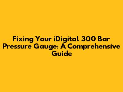 Fixing Your IDigital 300 Bar Pressure Gauge