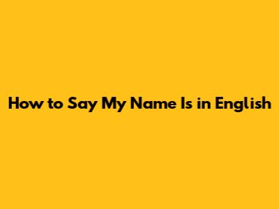 How To Say 'My Name Is' In English