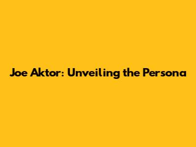 Joe Aktor: Unveiling The Persona
