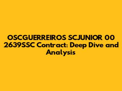 Hey there, data enthusiasts! Let's dive deep into the OSCGUERREIROS SCJUNIOR 00 2639SSC contract. We're going to break it down, analyze its key components, and hopefully, give you a solid understanding of what it entails. This isn't just about throwing around numbers and legal jargon; we'll translate it into plain English, so everyone can follow along. Understanding contracts is crucial in many aspects of life, and this one, in particular, has some interesting facets we can explore. So, buckle up, grab your favorite beverage, and let's get started. We will explore the contract from multiple angles, ensuring a comprehensive understanding. The aim is to equip you with the knowledge to navigate similar contracts confidently. This analysis is designed to be informative and accessible, regardless of your background in legal or financial matters. We'll be looking at the contract's objectives, the responsibilities of the parties involved, the financial aspects, and any potential risks or benefits. Analyzing a contract like this involves a meticulous examination of its various clauses, terms, and conditions. Our approach will be systematic, breaking down each element to understand its significance fully. This is about more than just a surface-level read; it's about uncovering the contract's core principles and implications. A detailed analysis like this can provide valuable insights, whether you're involved in similar contracts or simply curious about the process. We will attempt to decode the contract's essence, which should give you a clearer picture of its structure, functionality, and potential areas of concern. So, let’s unravel the mysteries of this contract together, step by step, making sure every detail is crystal clear. Our goal is to make sure you come away with a solid understanding of what this contract is all about. Throughout our exploration, we'll aim for clarity and conciseness, avoiding unnecessary complexities. This is about making contract analysis understandable and engaging for everyone involved. This is our main goal, to provide value to our users. We want to ensure that this breakdown will be easy to understand.